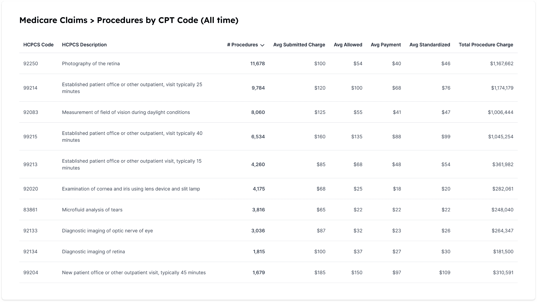 Enter the drug name or CPT code of your choice and see detailed, longitudinal analytics including popularity, trend lines, and provider rankings that will add confidence and clarity to your daily decision making.