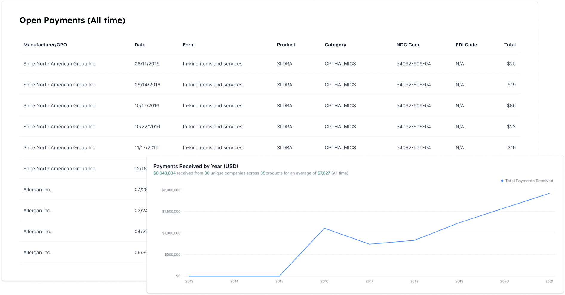 npiQ demystifies financial interactions between doctors and industry companies at the product and brand level, spotlighting potential influences on practice.