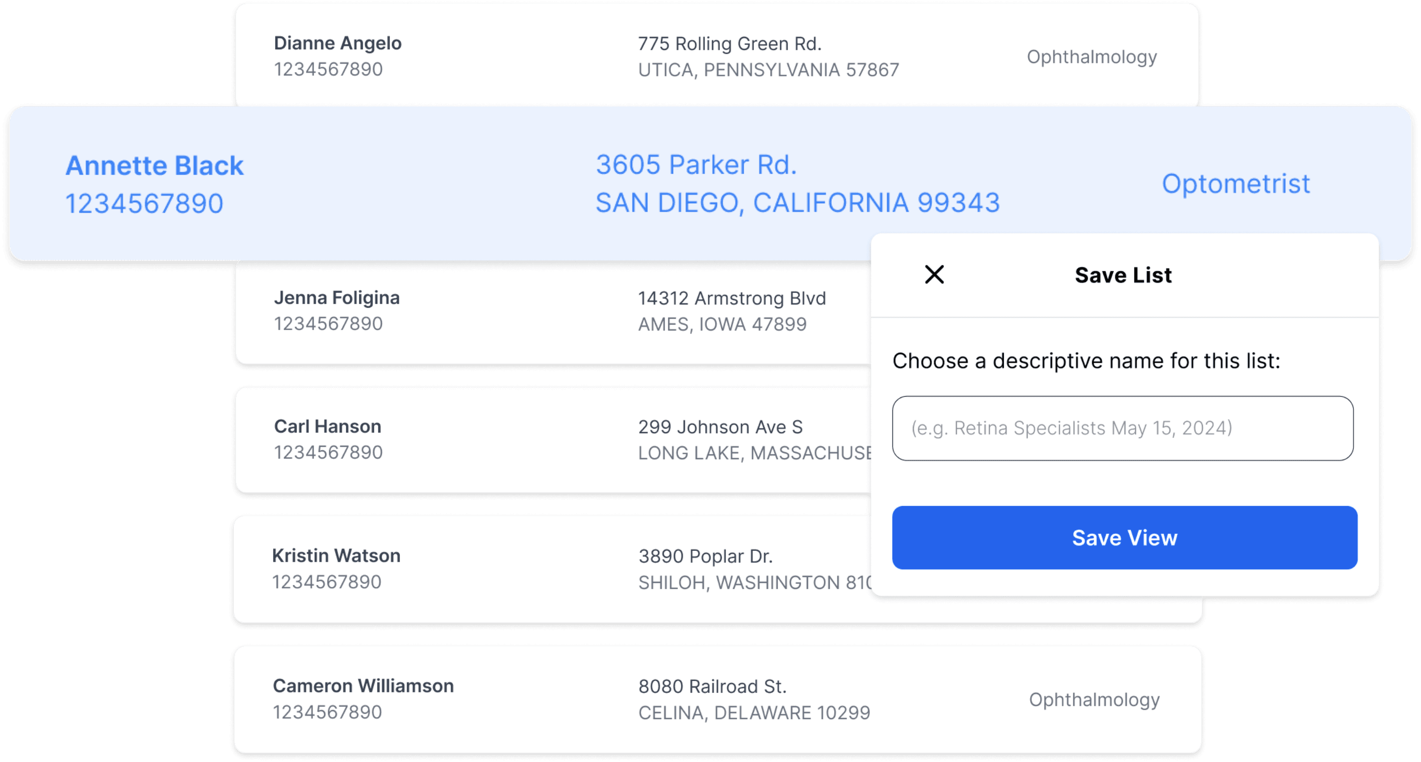 With 77,608 optometrists and ophthalmologists in the data set and 1,000+ new graduates added yearly, you can find detailed behavioral data on 100% of practicing doctors and proprietary demographic data not found elsewhere.