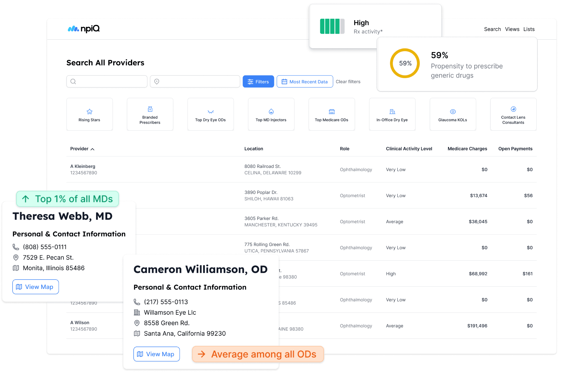 npiQ provides medical affairs, professional affairs, sales and marketing teams at eyecare companies with provider-specific analytics for doctor targeting & KOL strategy.
